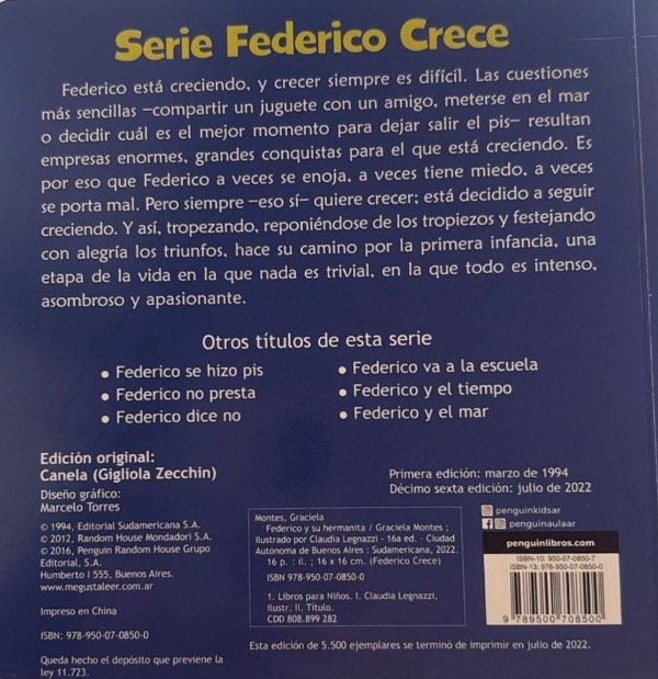 Federico esta creciendo, y crecer siempre es dificil. Las cuestiones mas sencillas -compartir un juguete con un amigo, meterse en el mar o decidir cual es el mejor momento para dejar salir el pis- resultan empresas enormes, grandes conquistas para el que esta creciendo.